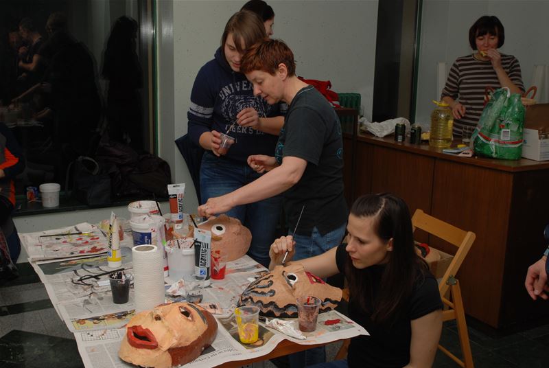 Ob balon namestimo koscke papirja s pomocjo skrobnega lepila.